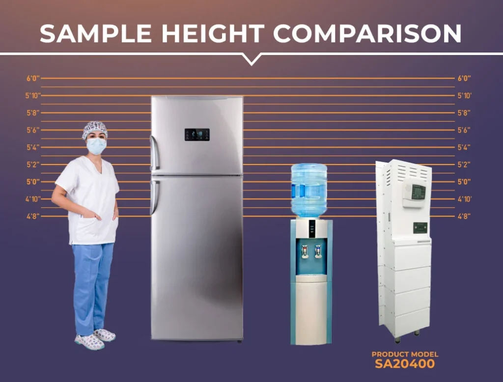 For customers—like ambulatory surgery centers—who require very large capacity, multi-cabinet Standalone/Hardwired units are available. These are extra cabinets attached directly beside the main unit, all having the same dimensions.